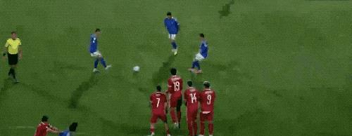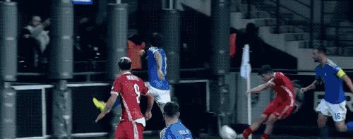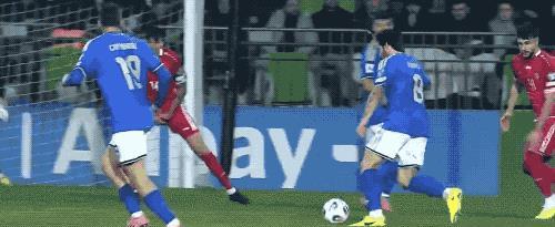 第25分钟,意大利的任意球制造威胁,门将出击失误,面对绝佳机会,坎比亚索的射门堪比解围。