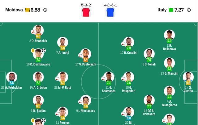 意大利首发:14-维卡里奥、4-布翁乔尔诺、23-曼奇尼、19-坎比亚索(75’3-迪马尔科)、2-贝拉诺瓦、15-克里斯坦特、10-拉斯帕多里(65’9-雷特吉)、8-托纳利、20-扎卡尼(82’15-弗拉泰西)、17-奥尔索里尼(75’7-波利塔诺)、11-斯卡马卡(65’18-埃斯波西托)。