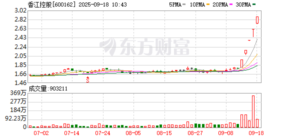 香江控股盘中涨停,已连收5个涨停板,截至9:35,该股报2.88元,换手率2.59%,成交量8481.07万股,成交金额2.38亿元,涨停板封单金额为2.03亿元。连续涨停期间,该股累计上涨61.80%,累计换手率为23.83%。最新A股总市值达94.13亿元。