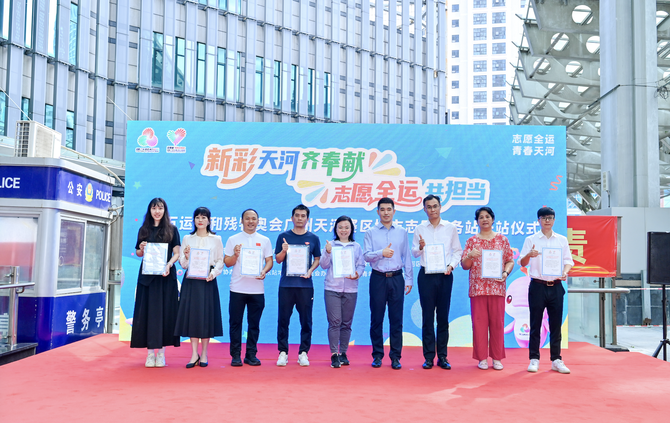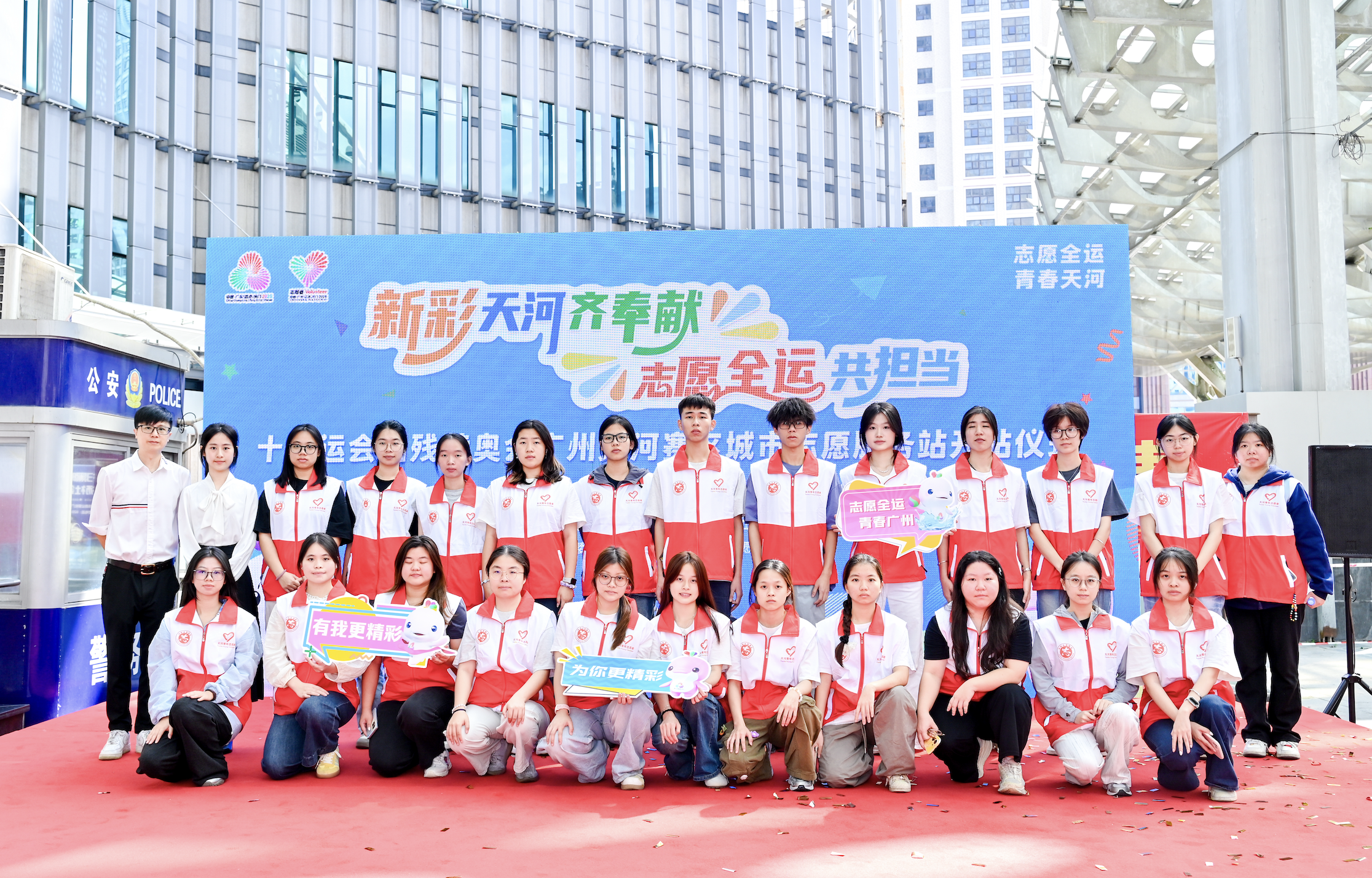 新彩天河,因奉献而多彩;志愿全运,因担当而荣耀。天河区将以此次开站为起点,汇聚全区志愿力量,用专业的服务、饱满的热情和城市的温度,为十五运会和残特奥会成功举办贡献力量,为广州城市形象增添光彩。