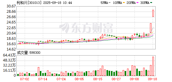 数据宝统计,截至09:43,利和兴成交额10.54亿元,创2025年3月13日以来新高。最新股价上涨16.34%,换手率20.02%。上一交易日该股全天成交额为7.90亿元。